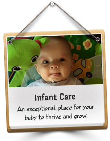 With many different choices for child day care in Carroll, Ohio we try to stand out from the others by focusing on the quality of our learning environment for children of all ages, beginning with infant care. Our program includes activities to help infants reach learning milestones while still providing nurturing care and attention to each infant’s needs. We have special programs for preschool-aged boys and girls to get them ready for the structure and schedule of the modern classroom.